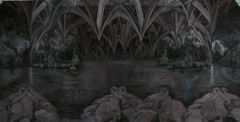 Join Bev Pike on a tour of her exhibition, Grottesque. Learn about her art practice and the inspirations for these lush, wall-sized cave and grotto paintings.