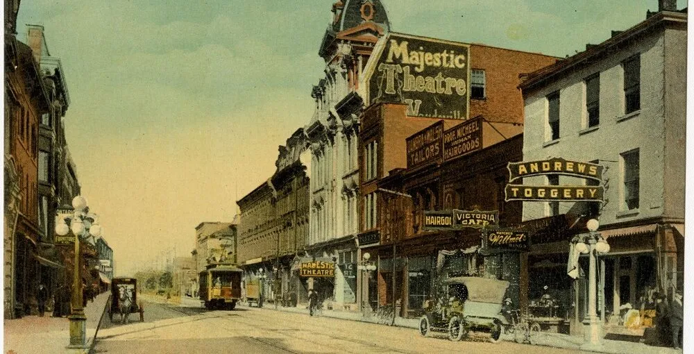 Image: Majestic Theatre, Dundas Street facing east, London Ontario, c. 1920s, Post Card, Dr J. Malcolm Smith Collection of Postcards and Ephemera, Archives and Special Collections, Western Libraries, Western University
