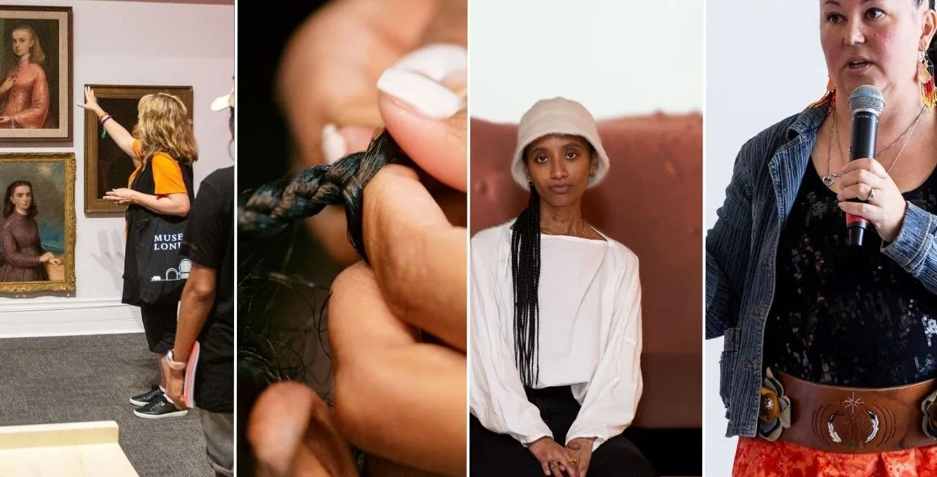 To extend community learning around themes featured throughout Decolonial Conversations: Reimagining Pasts, Presents, and Futures in International Contexts, Museum London is offering an array of concurrent, free, and family-friendly activities to expand our understandings of identity, language, place, and belonging. Programming will include drop-in tours of the museum, a brief screening introduction with artist Jessica Karuhanga, an Anishinaabe Language Lesson for children, and a hair braiding workshop.