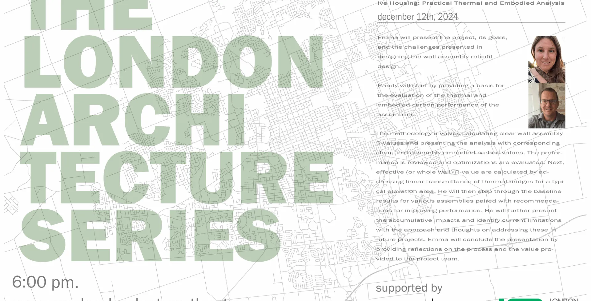 The London Architecture Series is a seasonal program of talks presented in partnership with the London Society of Architects. Join us to learn more about the practice of architecture in and around our community and across Canada, featuring presentations by leading architects and industry professionals.