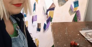 Remember to wear an art apron or clothes you don’t mind getting stained as you will be using permanent printing inks.